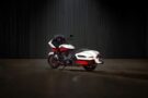 Die Challenger Elite zitiert Rennlegende Gene „Alabama Flash“ Walker mit einer auffälligen Dreifach-Lackierung in Crystal White Pearl, Black Candy und Red Candy, veredelt durch handgemalte Linien und Headdress-Logo.